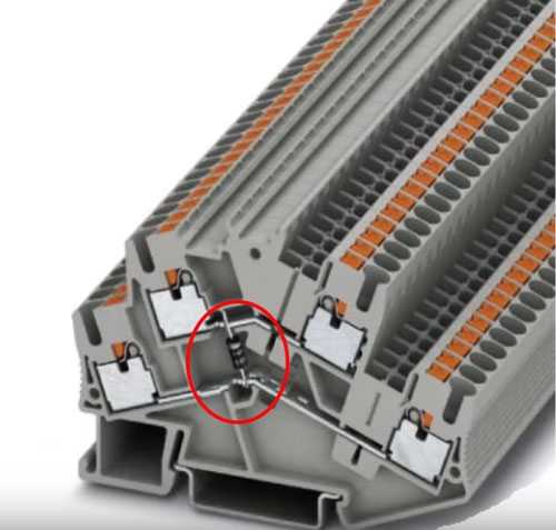 Во-первых, постоянный «поджим» компенсирует деформацию металла проводника (например, температурную). Следовательно, в течение всего периода эксплуатации надежность контакта в клеммнике не нарушается.