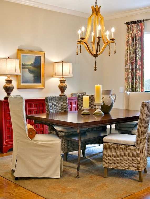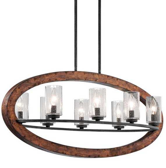 Популярны также деревянные светильники в стиле кантри. Узнать их очень просто по натуральному древесному оттенку, отсутствию металла, кованых деталей и углов. Такие модели, как правило, имеют немалые габариты и часто используются для создания домашнего уюта в столовых комнатах коттеджей и дач.