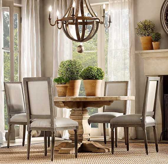 Но прованс не так уж прост. Это — стилистика многозначительных деталей. В качестве подвесной потолочной люстры частенько используется хорошо обработанный массив, раскрывающий чудесную фактуру древесины. Рожки для ламп также выполняются из дерева, они могут быть прикрыты ткаными абажурами в тон обстановки.
