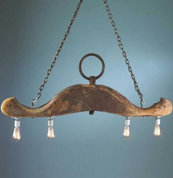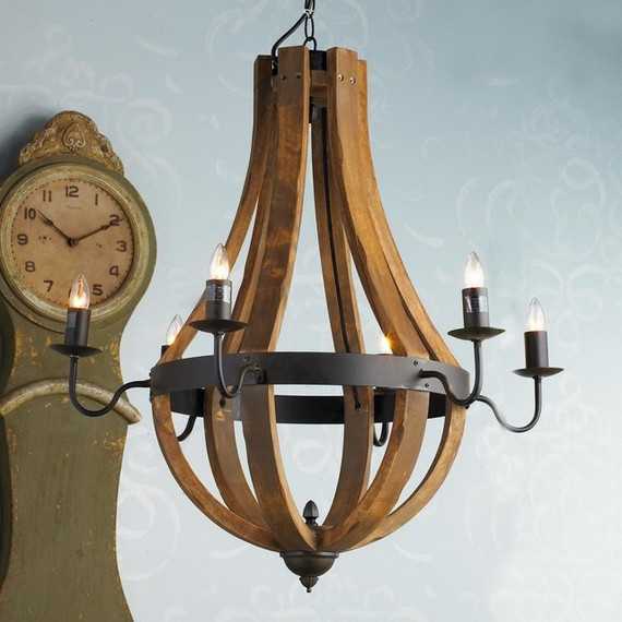 Старинный стиль в люстрах из дерева представлен грубой, топорной работой, благодаря чему удается создать атмосферу средневековья. Деревянные люстры под старину часто делают в виде колеса телеги, подвешенного на веревке к потолку. На колесе по кругу располагают лампы, имитирующие свечи. Также популярны и светильники в виде бревна, подвешенного к потолку с закрепленными на нем лампами. Такие модели можно встретить в стилизованных кафе, ресторанах или банях, но и в домашнем интерьере они смотрятся потрясающее, особенно если вы хотите создать деревенский стиль.