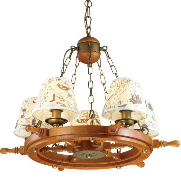 Деревянная люстра с тканевыми абажурами в морском стиле