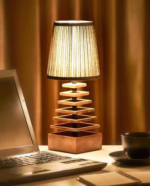 Настольная деревянная лампа в форме пирамиды с абажуром