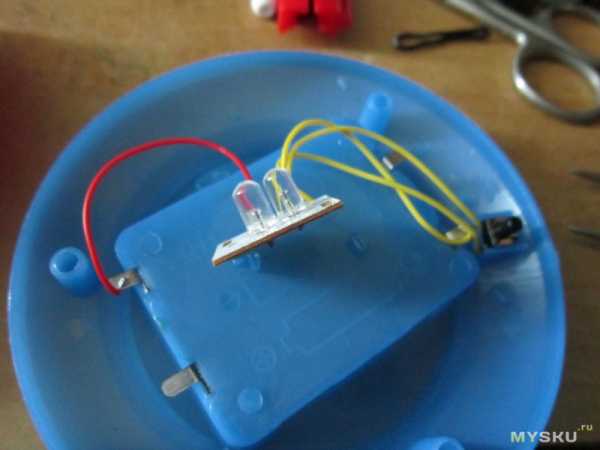 Что интересно, при установке батареек светильник мигает всеми светодиодами и затухает. Вроде приветствия. Ладно.