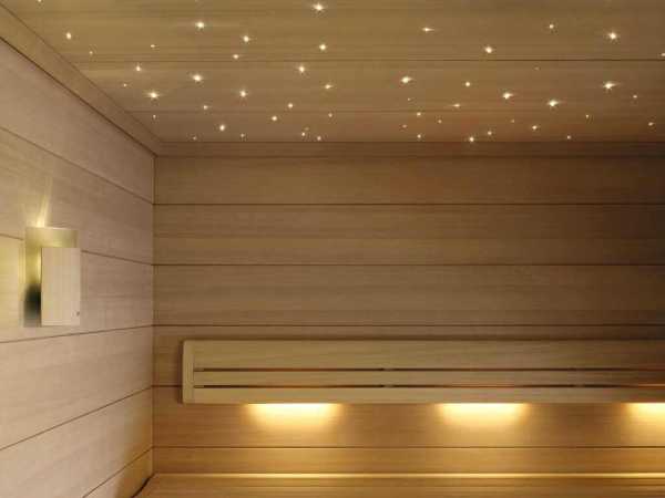 Они представлены основными тремя типами: лампы накаливания, светодиоды и оптоволокно. Все они имеют свои уникальные качества, но оптоволоконное освещение всё-таки является наиболее приспособленным к агрессивной среде парилки.