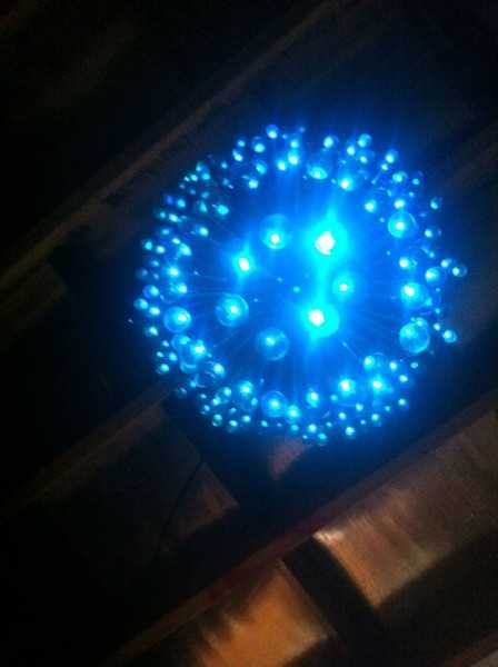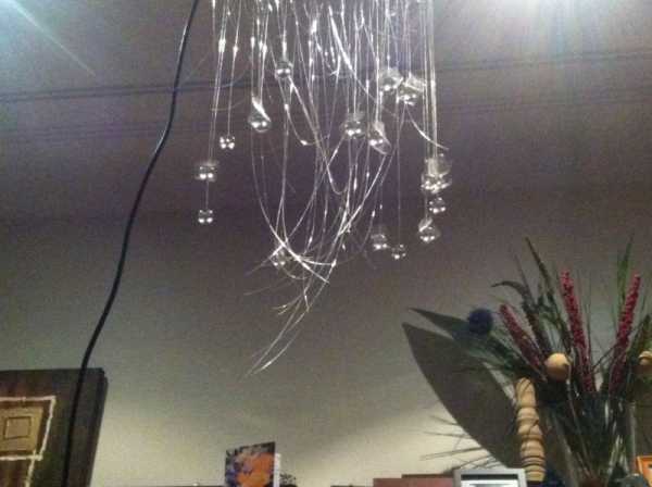 Такую люстру вполне можно изготовить своими руками, соединить светогенератор с пучком оптоволокна не представляет особой трудности. Дальше сами пучки волокна можно разместить так, как подсказывает фантазия и желание человека. Ну а если хочется что-либо экзотического и люстру сложной конструкции, то в этом случае лучше всего обраться к специалистам.