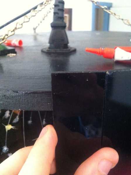 Прикрепляем пластины с помощью суперклея на деревянную основу, используем угольник для точного выравнивания.