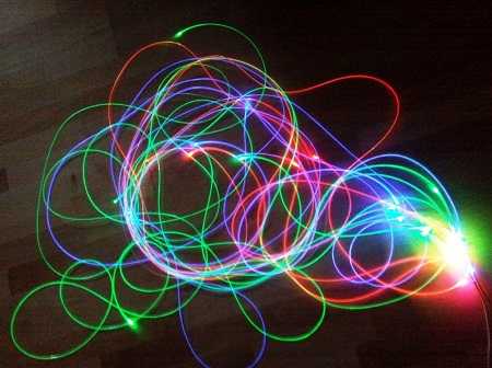 К сведению! Изготавливаются волокна, стенки которых также светятся (если нет изоляции).