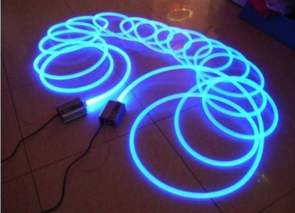 - Все тело кабеля – специально подвергнутое обработке волокно источает свет по всей своей длине сходно неоновой трубке.