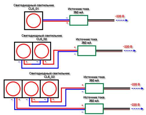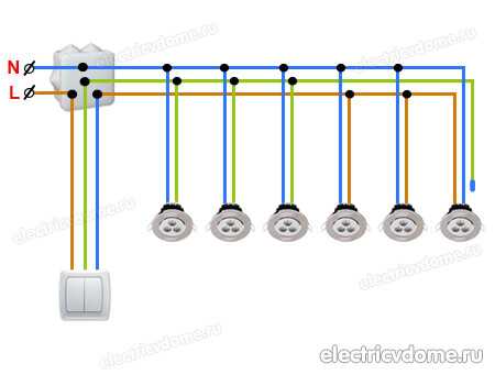 Как собрана схема подключения точечных светильников 220В