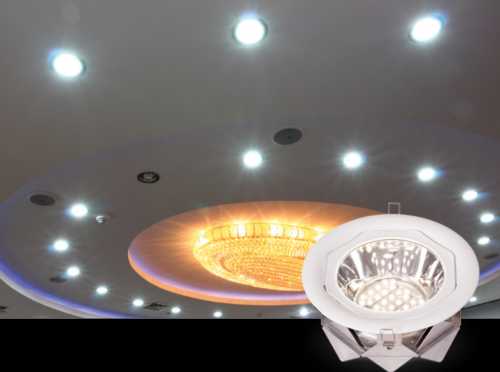 До начала монтажа на потолочной поверхности важно определить места расположения встроенных светильников. По своей конструкции такие осветительные приборы охватывают сектор освещения всего лишь 30º. С другой стороны, за счет своей компактности схема их установления может быть достаточно плотной. Если следовать ей, то на разных потолках их может располагаться достаточно много.