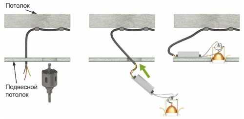 Подключение точечных светильников в подвесном потолке: схема и пошаговая инструкция