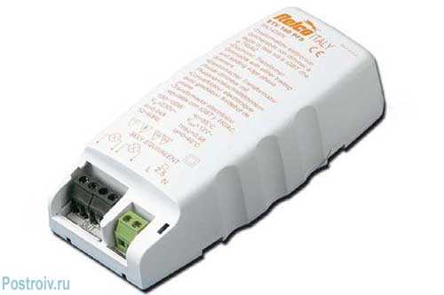 Последний элемент необходим для того, чтобы выполнить схему подключения точечных светильников. обеспечив необходимое напряжение. Среди таких трансформаторов используются приборы нескольких типов: