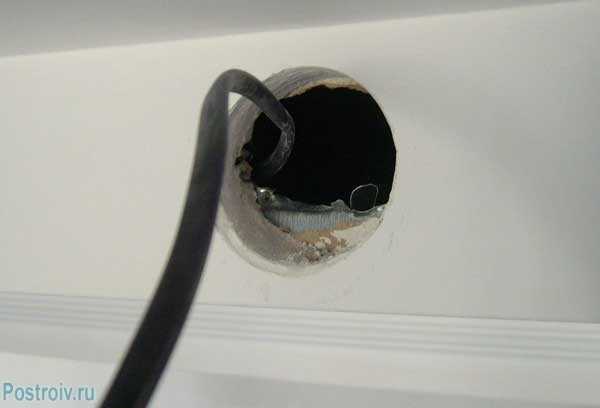 - Протяните кабель в проделанную щель. Не забывайте, что его нужно предварительно обесточить.