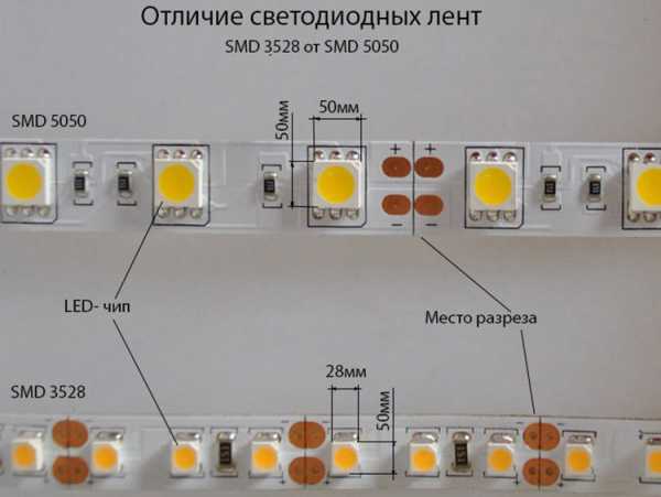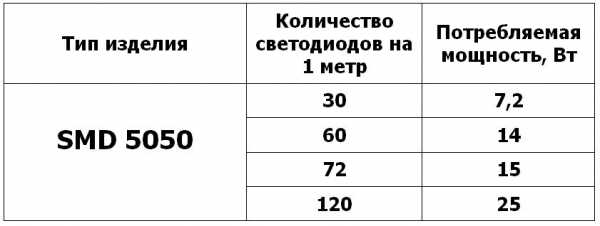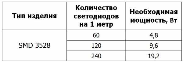 Таблица — мощность светодиодных лент 3528 и 5050: