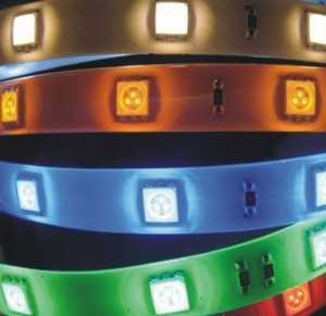 В первую очередь следует сказать, что сегодня существует два типа лент. Их маркируют как RGB и SMD-устройства. Первая разновидность предоставляет своему владельцу возможность создавать самые различные оттенки подсветки. Ее каждый отдельный элемент состоит из 3 диодов. Отсюда происходит и название устройства. Диоды светятся красным, зеленым и синим цветом (Red, Green, Blue – RGB).