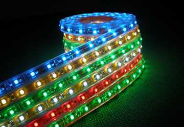 - R, G и В световые диоды, относящиеся к серии SМD-3528 с размерами 3,5х2,8 мм2 способствуют излучению светового потока в пределах 0,6-2,2lm. Серия SMD-5050 светит ярче, а световой поток варьируется в пределах 2-8lm. Такой тип осветительных лент представлен светодиодами LЕD-RGВ-SМD-3528 или LЕD-RGВ-SМD-5050.
