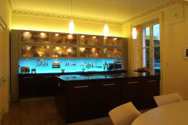 Светодиодная подсветка для кухни под шкафы: выбор и монтаж ленты своими руками