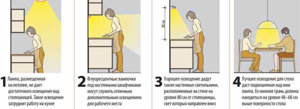 Таким образом проводится монтаж и подключение дополнительных осветительных приборов. Как видно, эти работы можно легко выполнить своими руками. Но не стоит забывать, что качество освещения будет зависеть не только от монтажа, но и выбора осветительного устройства. Особое внимание стоит уделить подсветке, которая устанавливается над рабочей зоной.stroim.guru