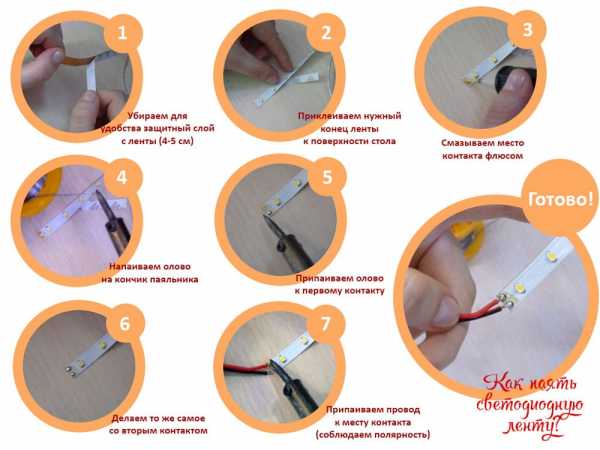 Пошаговые рекомендации по пайке соединения ленты с кабелем