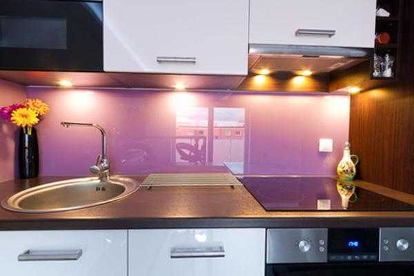 - Стойкость к различным воздействиям. Прежде всего это касается воздействия перепадов температуры и агрессивных химических веществ. Здесь главное знать, как сделать подсветку на кухне правильно.